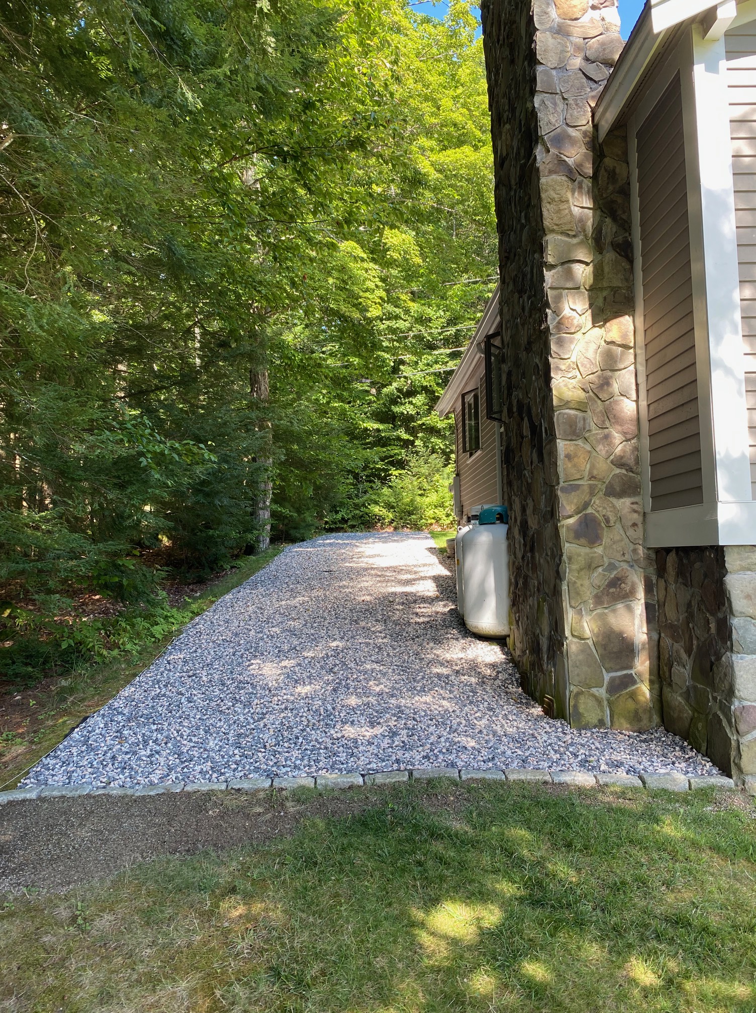 After considering options, we chose the most environmentally friendly (approved and recommended by the Portland Water District and DEP): crushed rock.