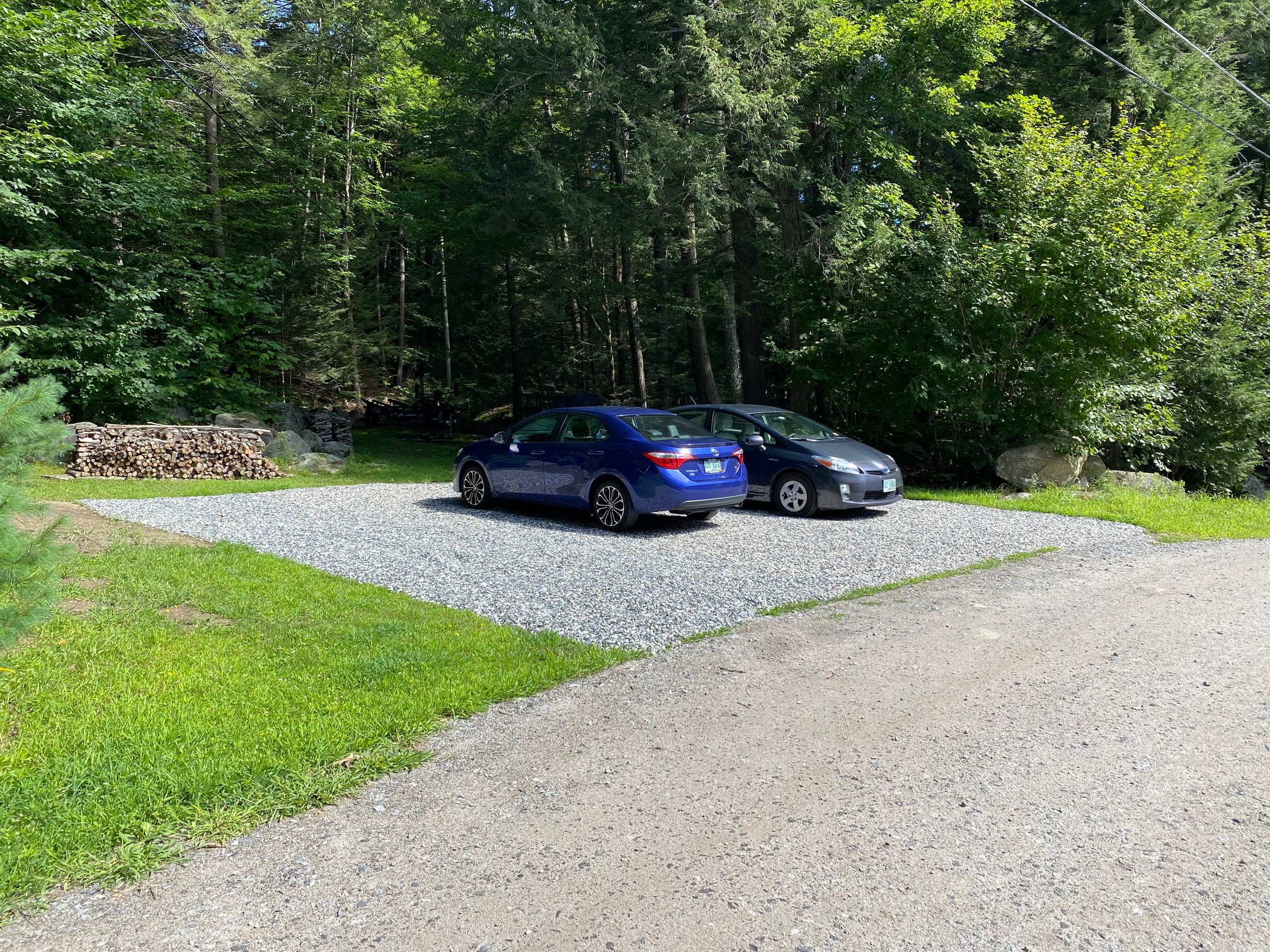 This solution has been in place now for several years and what used to be a muddy parking area every spring is now just another patch of pleasant looking area on our property. Notice the nice, clean look.